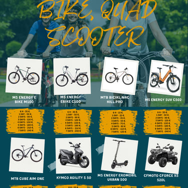 Boat rentals, SUPs, bicycles, scooters, quads, and cozy apartments for rent on the island of Rab.